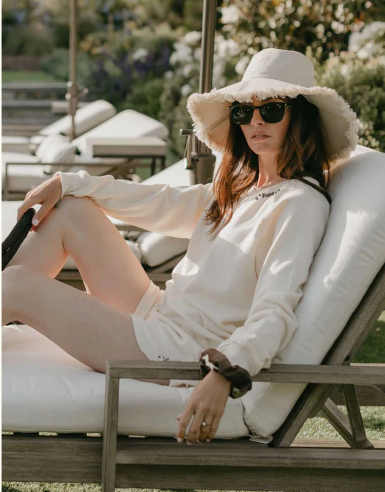 For the horse girl off duty. These buttery-soft fleece varsity shorts are the perfect thing to pop on after a long day at the barn. Cut with a rounded side hem, and a dash of horseshoe embroidery for good luck.